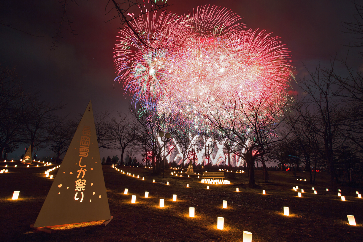 雪しか祭りのフィナーレには、長岡花火「雪花火」という花火が打ち上げられます。