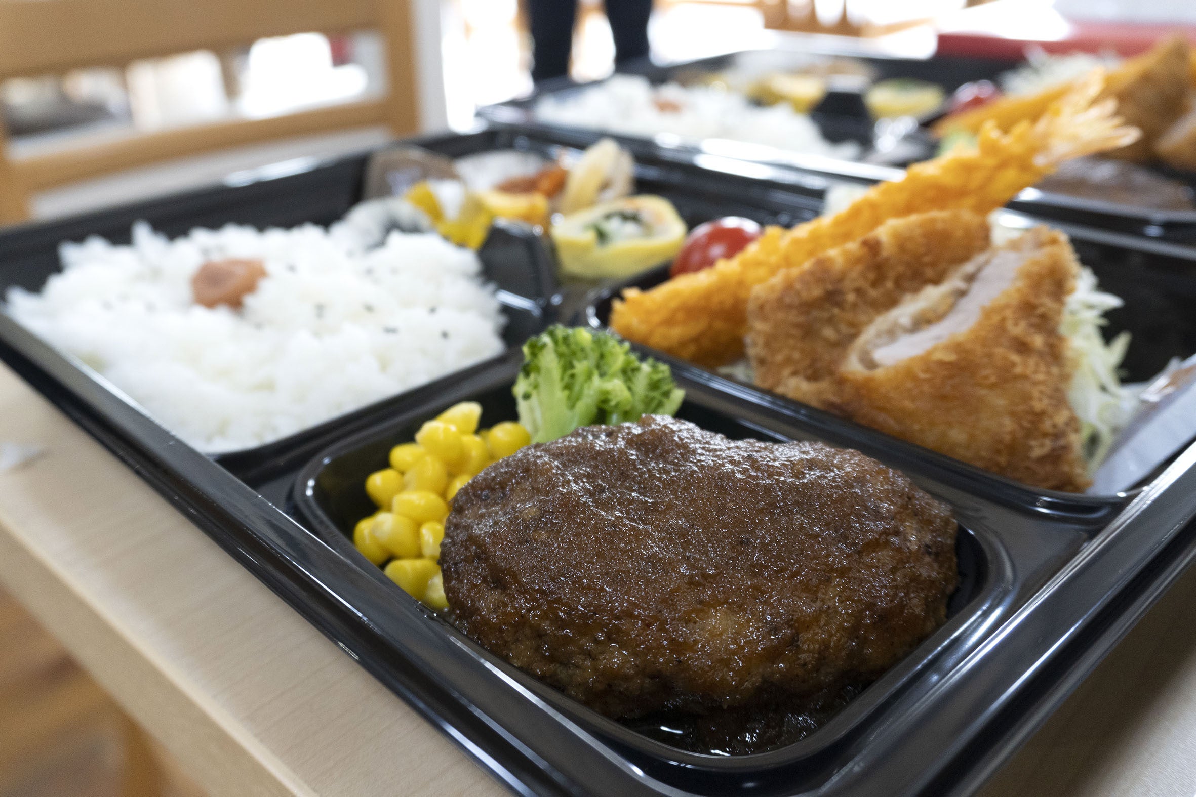 今回のプロジェクト用に作って頂いたお弁当は、医療従事者の方々に「食で元気になってもらいたい」との思いからボリューミーなハンバーグと揚げ物でスタミナたっぷり。食中毒対策として抗菌シートを挟み、いざ配達です!