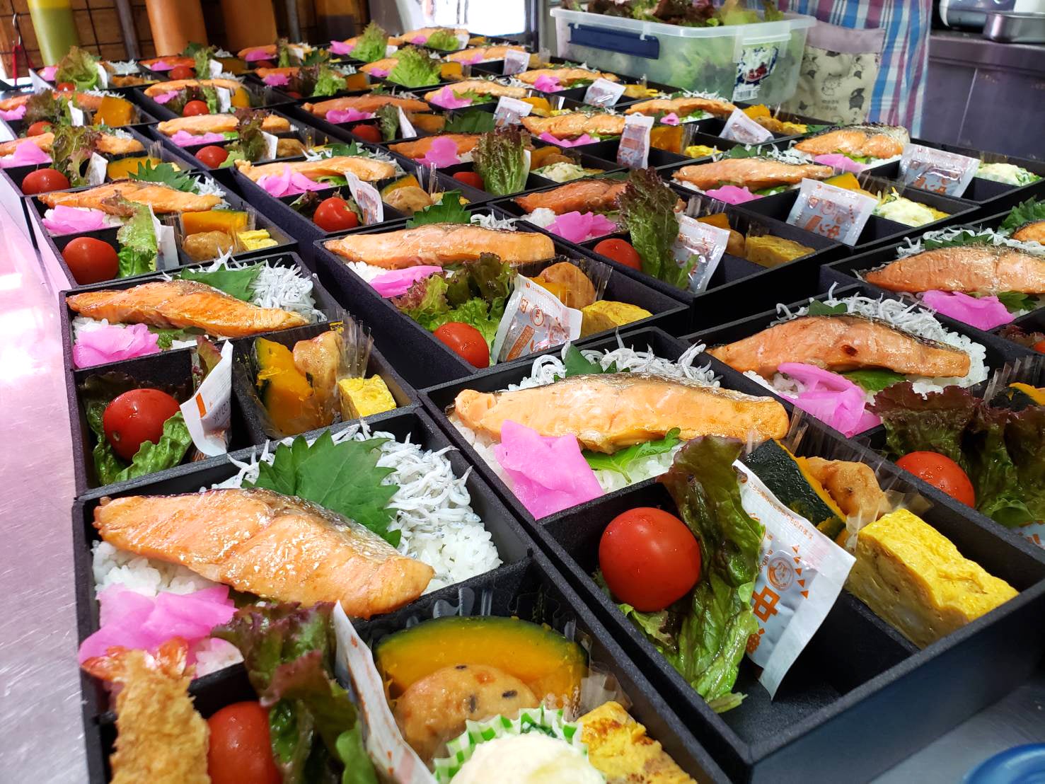 地元の幸にこだわった、さくら亭さんならではのお弁当です。しらすの他に鮭や海老など海産物がたくさん!ぜひ、海を思い浮かべて食べて頂ければとのお店の図らいです。