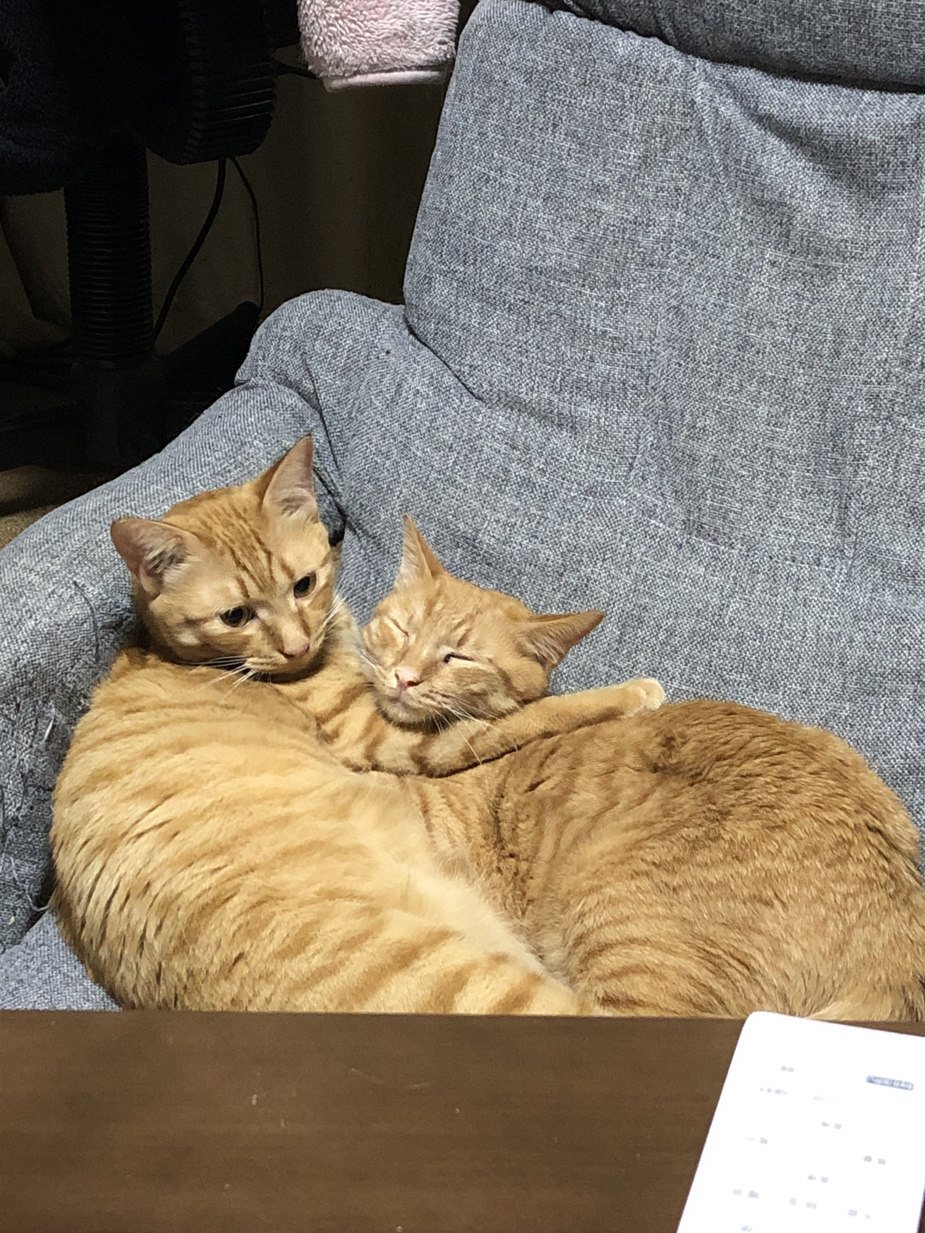 定期検診で貧血は治りました。体重が増えていた為薬が750mgになりました。もう食欲も完全に戻り、平介と取っ組み合いも始まりました。平介も嬉しそうです。