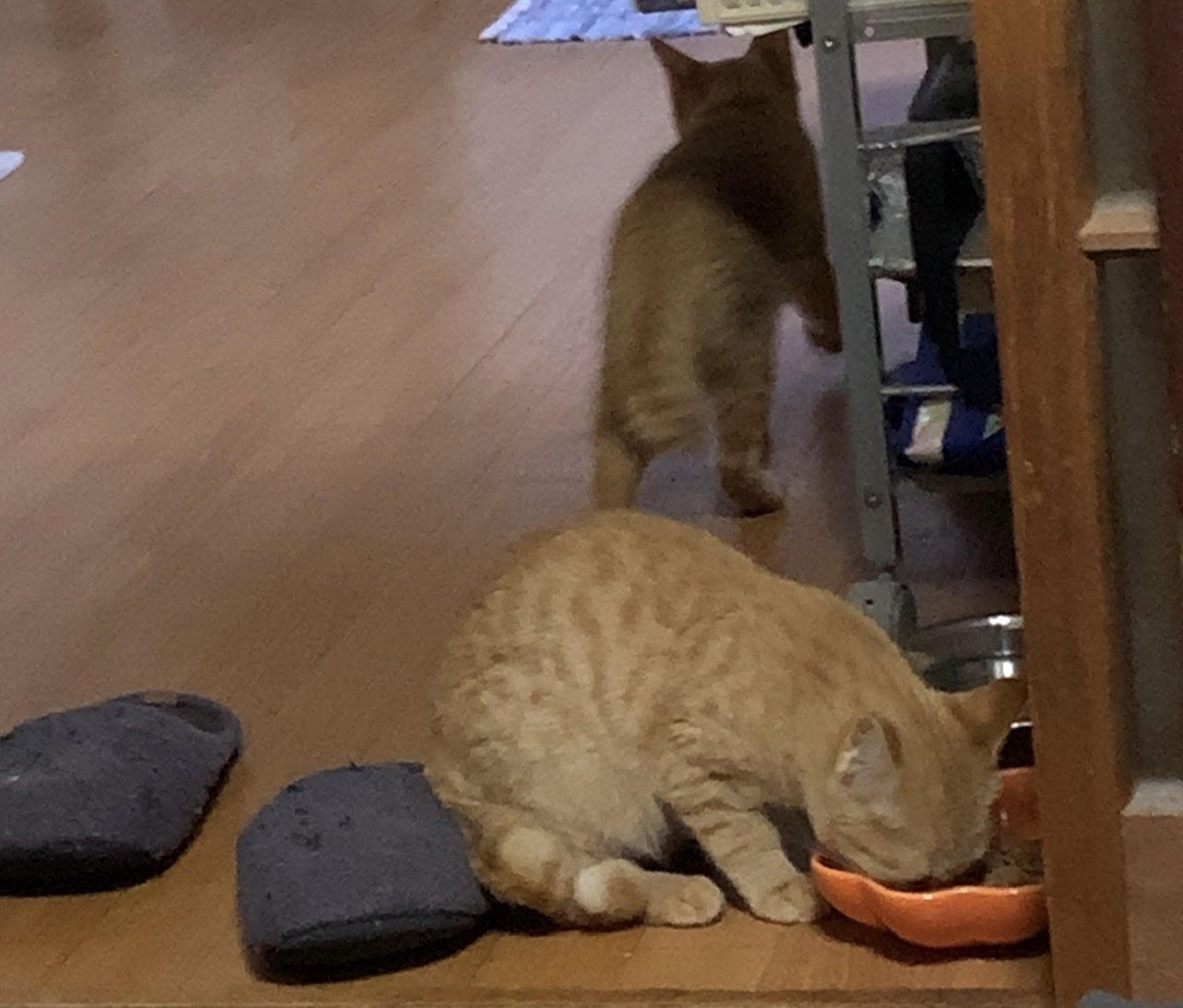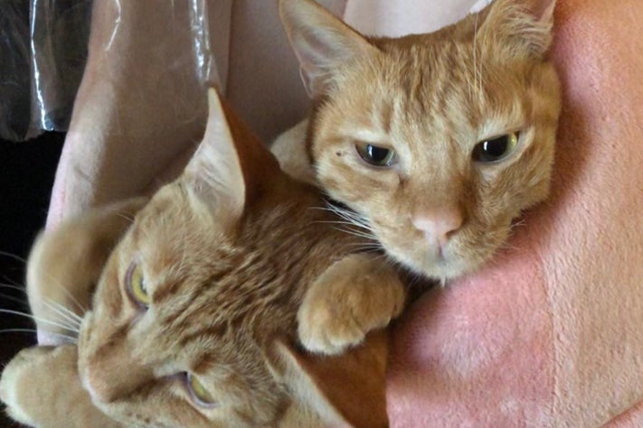 手前が隆之介です。陰に隠れて平介を守っているのでしょうか。でも徐々に取っ組み合いが減り、平介が吹っかけても無視をする様になりました。元々クールな性格だったのでもう大人になってきたのかと思っていました。2020年4月頃から両目の瞬膜が出たまま戻らなくなり、病院で診てもらったのですが何ともないという事でした。その後も目は治らず右目が涙で開かなくなり、その時は結膜炎で目薬をもらって来ました。その後もどんどん元気が無くなり、あんなに好きだったちゅーるも食べなくなりました。おしっこの色も濃くなり病院で血液検査をした結果、猫伝染性腹膜炎でした。もっと早く血液検査をしていればと自分を恨みました。