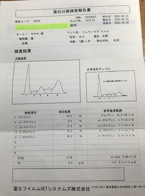 いつもご応援いただきましてありがとうございます。病院から蛋白の検査結果が届きました。