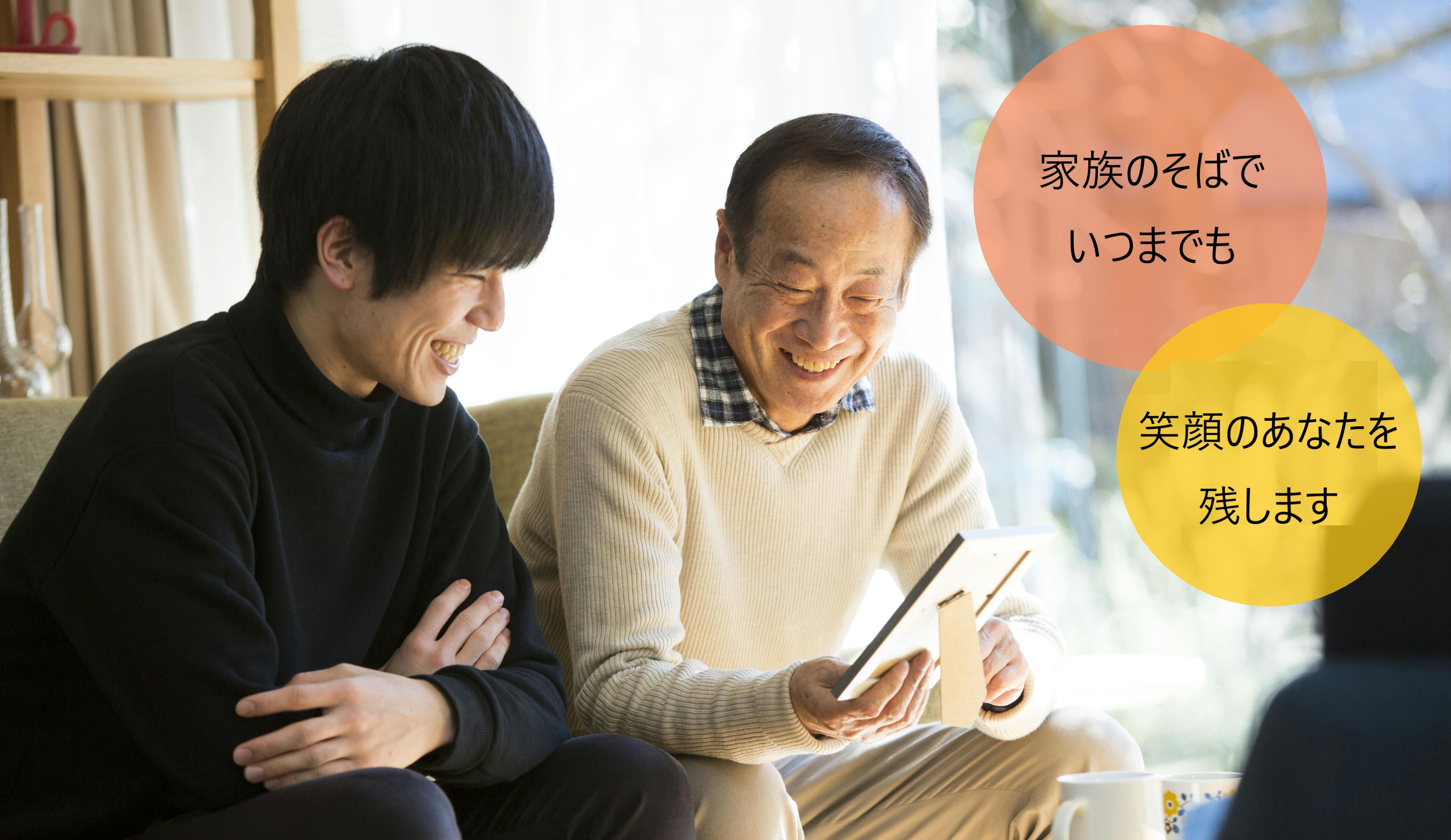 お好きな背景やアイテムでレイアウトした、笑顔の素敵なオリジナル写真を特設スタジオでお撮りします。例えばご夫婦なら、あとからご夫婦一緒の写真に変えられるよう、お二人一緒にお撮りすることもできます。リビングにある何気ない家族写真のように、笑顔のあなたが、いつでもそこにいるような自然なお写真に仕上げます。