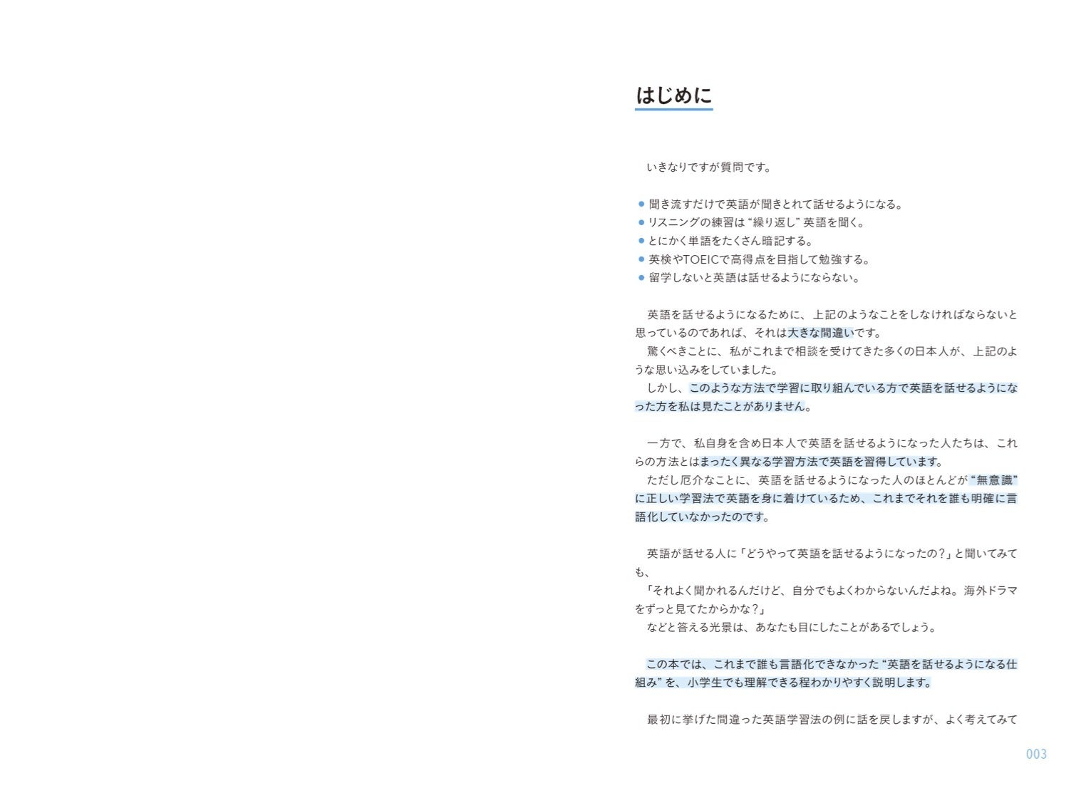 なぜYouTubeなどの動画ではダメだったのかと言うと、本という形にすることによって、全国の学校において欲しいと願いました。また、YouTubeの動画は1本1本がバラバラに独立しており、一部の理論を理解するのには向いていますが私の英語学習の理論の全体像を体系的に理解するのには向いていません。本であれば1冊に体系的に情報をまとめることが出来ますので、ゼロから順序立てて、読者が全体像を分かりやすく理解することができます。