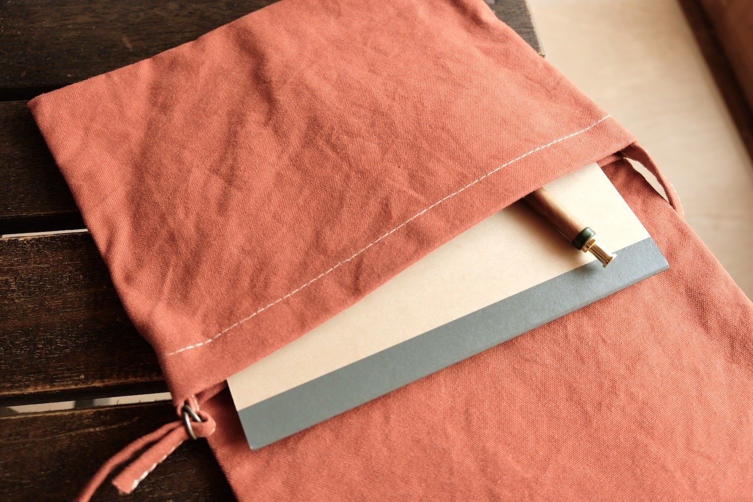 何かを考えるときは書いた方が頭の中を整理しやすいし、ヒントや学びを得るには 出掛けることも大切だなと思い、書くという行為がいつでも快適に行えるように、出掛けるときは出来るだけ身軽で心地よくいてもらえるように、持ちモノ作りに取り組みはじめました。
