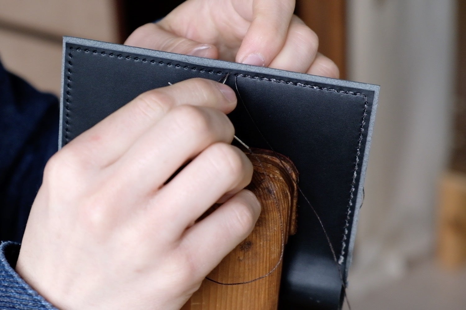 一針一針、手縫いで丁寧に縫い合わせました。手縫いのメリットは丈夫さとステッチの表情。どこか魅力的な手縫いのステッチは、革の味わい深さをさらに引き立ててくれます。