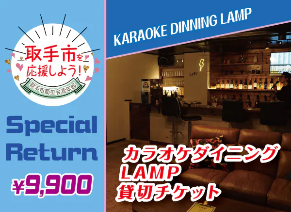 今回のリターン紹介は、取手東口徒歩3分のカラオケダイニングLAMPを貸切で利用できるチケット(11,000円相当分)です!
