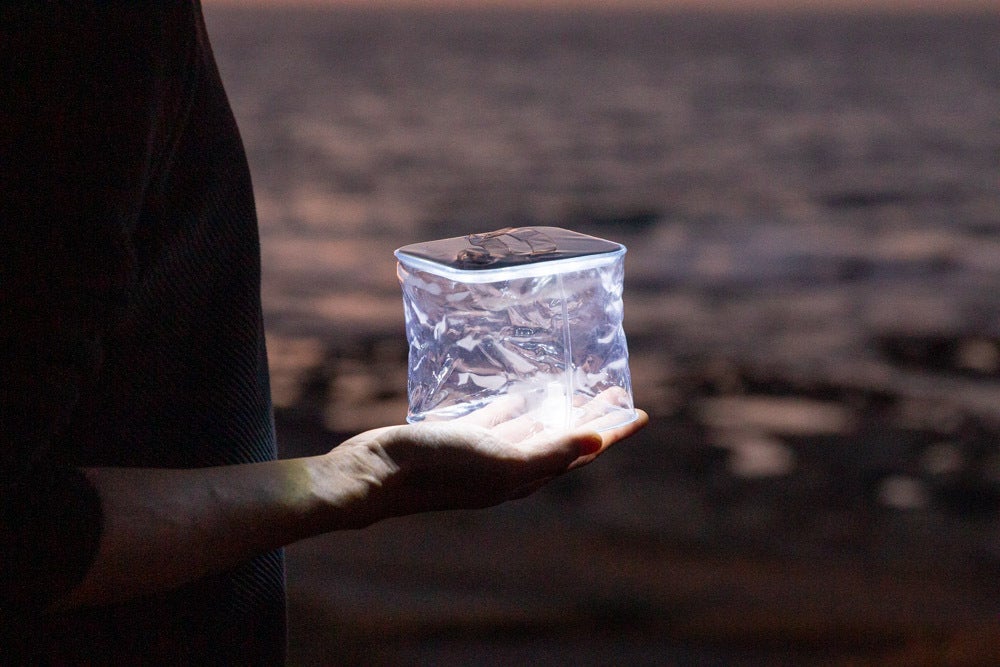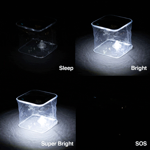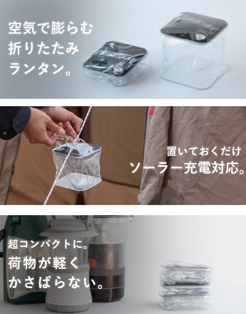 空気で膨らむ 折りたたみランタン。