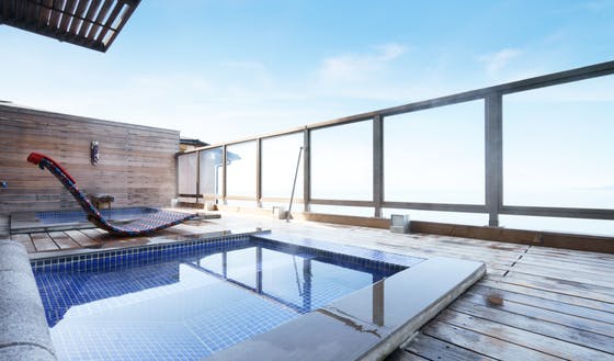 〆は絶景の露天風呂から沈む夕陽を眺める。正しい休日の過ごし方!