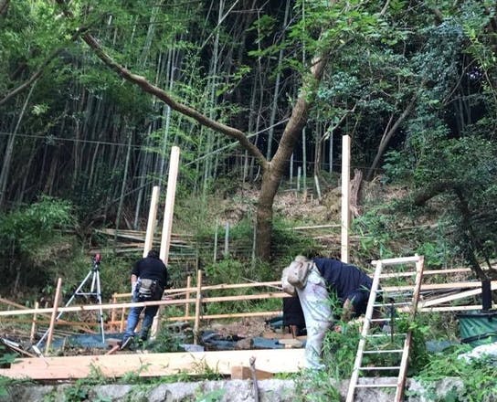 庭のジプシーさん、ツリーテラスの足元整備。防草シート敷き込み、竹除去など