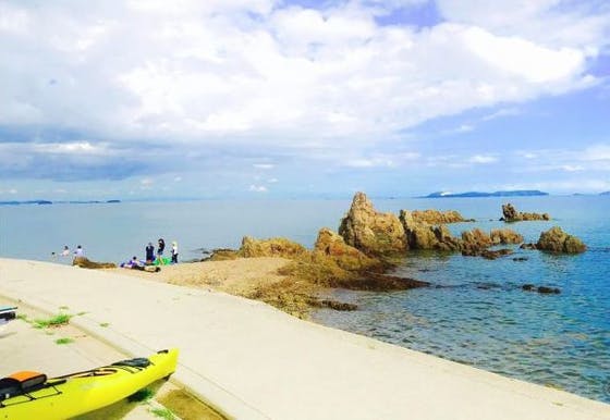 近所の大塚海岸のようすです。無料のトイレと水道があって、一日楽しく海遊びができます。海っ子倶楽部という地元のボランティアグループが子どもたちのサポートをしてくれるんですよ。カヌーに乗ったり、海のものを獲って標本にしたり、他にも楽しいこといっぱい!