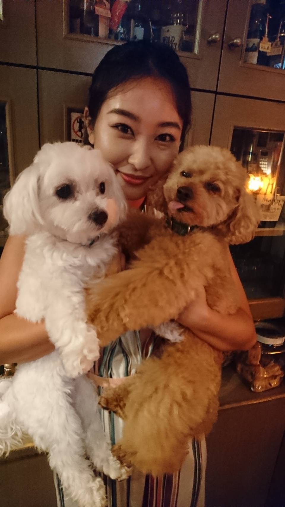 トイプードルのわんこが店長でマルチーズのわんこがマスターとして