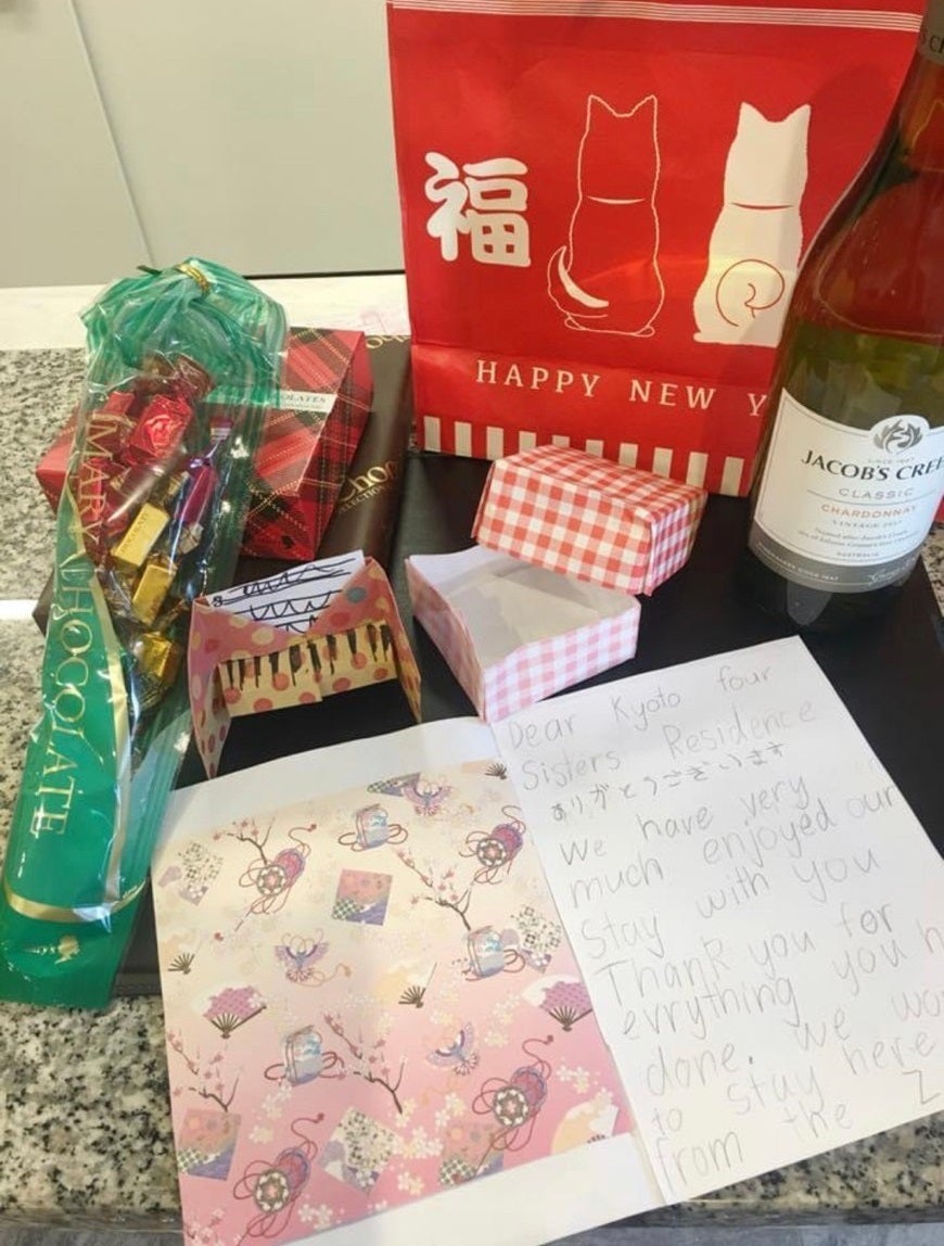 2020/08/16 10:30この場所がとても気に入っています。どの瞬間も。沢山のお部屋、フレンドリーで親切なスタッフ、素晴らしいロケーション、全てがわたしたちが思い描いていたものです。滞在中にオーナーさんが娘のために綺麗にデコレートされたクッキーを焼いて、私の娘のお誕生日をお祝いしてくださいました。お部屋はサービスで満ち溢れ、またある日は娘たちのぬいぐるみを小さな毛布をかけてベッドで寝かせてくれていました。ぬいぐるみ専用!さらに、スタッフはバスや電車に乗って名所を観光するのを手伝ってくれたり、どうしようもなく困っている時に電話番号を調べてくれました。喉がとっても痛くなってしまった時に、スタッフが日本の薬を書き出してくれました。おかげで、薬を買う事ができました。もし、あなたが京都へ行くのなら、ここへ泊まることを強くお勧めします。 もっと見るスイートルームでパーティー【お客様の声11】