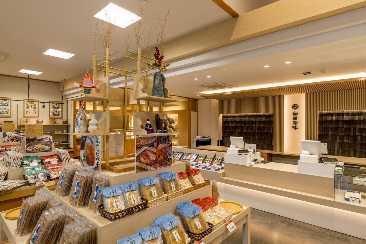 和田珍味(当時は和田商店)は創業当時から地元でとれたふぐなどの新鮮なお魚を加工し販売していました。昭和30~40年頃はふぐのはえ縄漁が最盛期をむかえ、味醂干や一夜干など製造していました。そもそも地元でとれていたからこそふぐをはじめとした商品作りが行っています。そこから数十年して地元大田市に平成11年に弊社長年の夢であります直営店である「和田珍味本店」を開店、出雲の地にも平成25年の『出雲大社平成の大遷宮』に合わせ「福乃和」を開店いたしました。