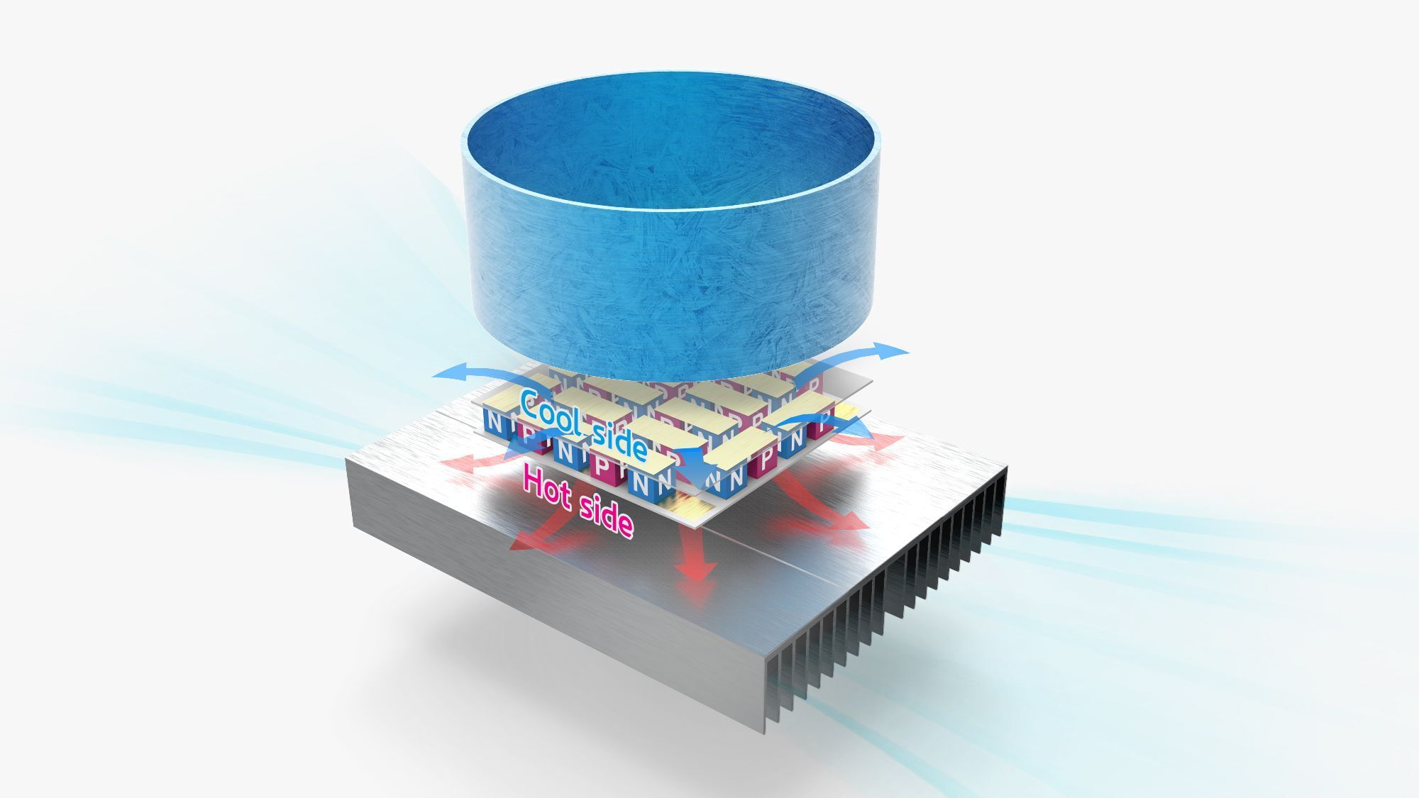 従来の冷蔵庫には、温度を調節する核心充電材である冷媒を使用しており、大きなコンプレッサーが大きな騒音を放つこともあります。しかし、<EZENCOOL>は冷媒機能を使用しなくても温度を冷たく保つことができる「半導体素子方式」を採用しました。半導体素子は熱電半導体、熱電素子ともいう最新技術です。電気と熱を同時に作る半導体で電気を供給し、冷却/加熱機能を実現させることで、温度の差を与え、電力を生産する方式です。
