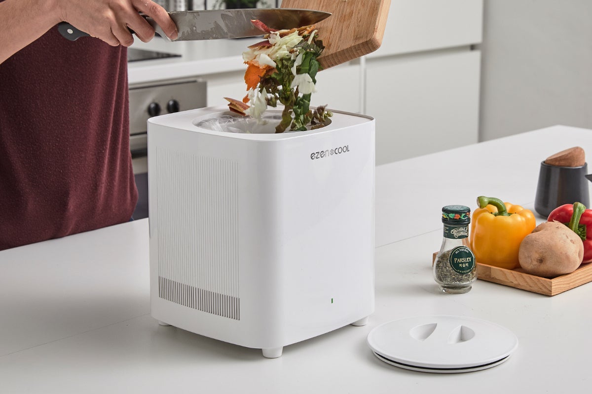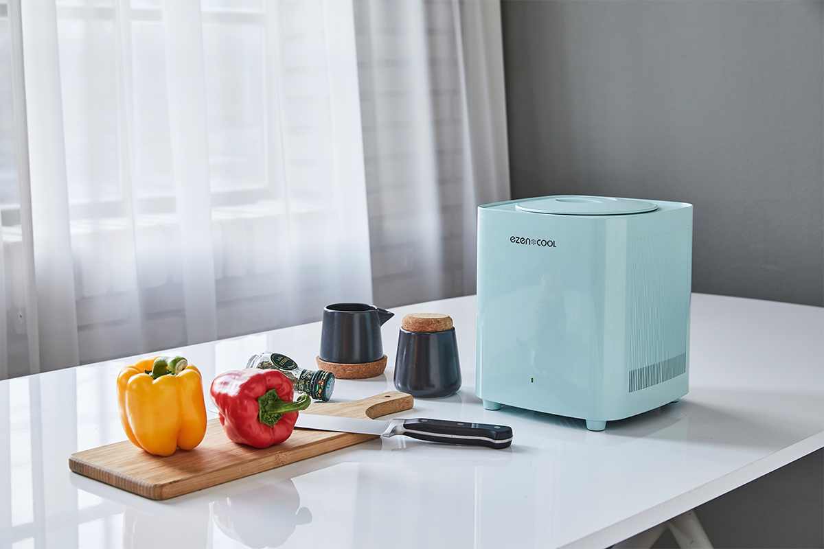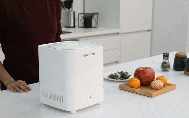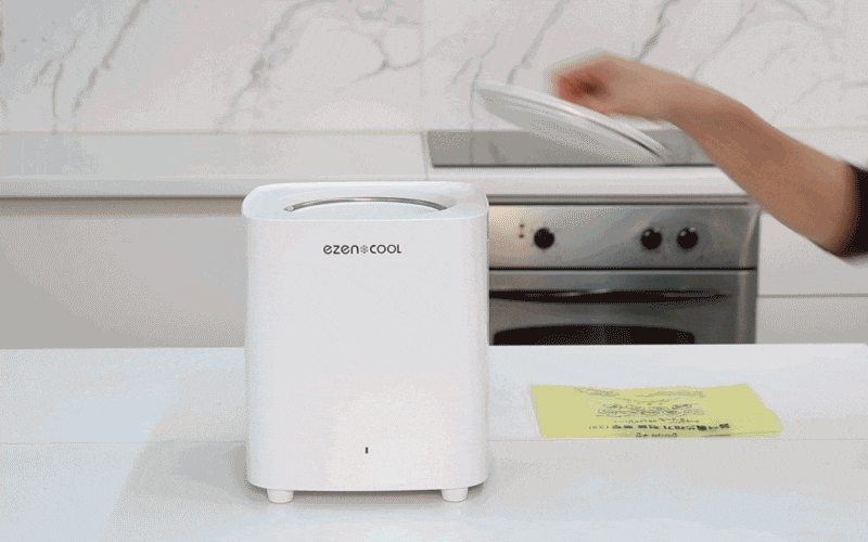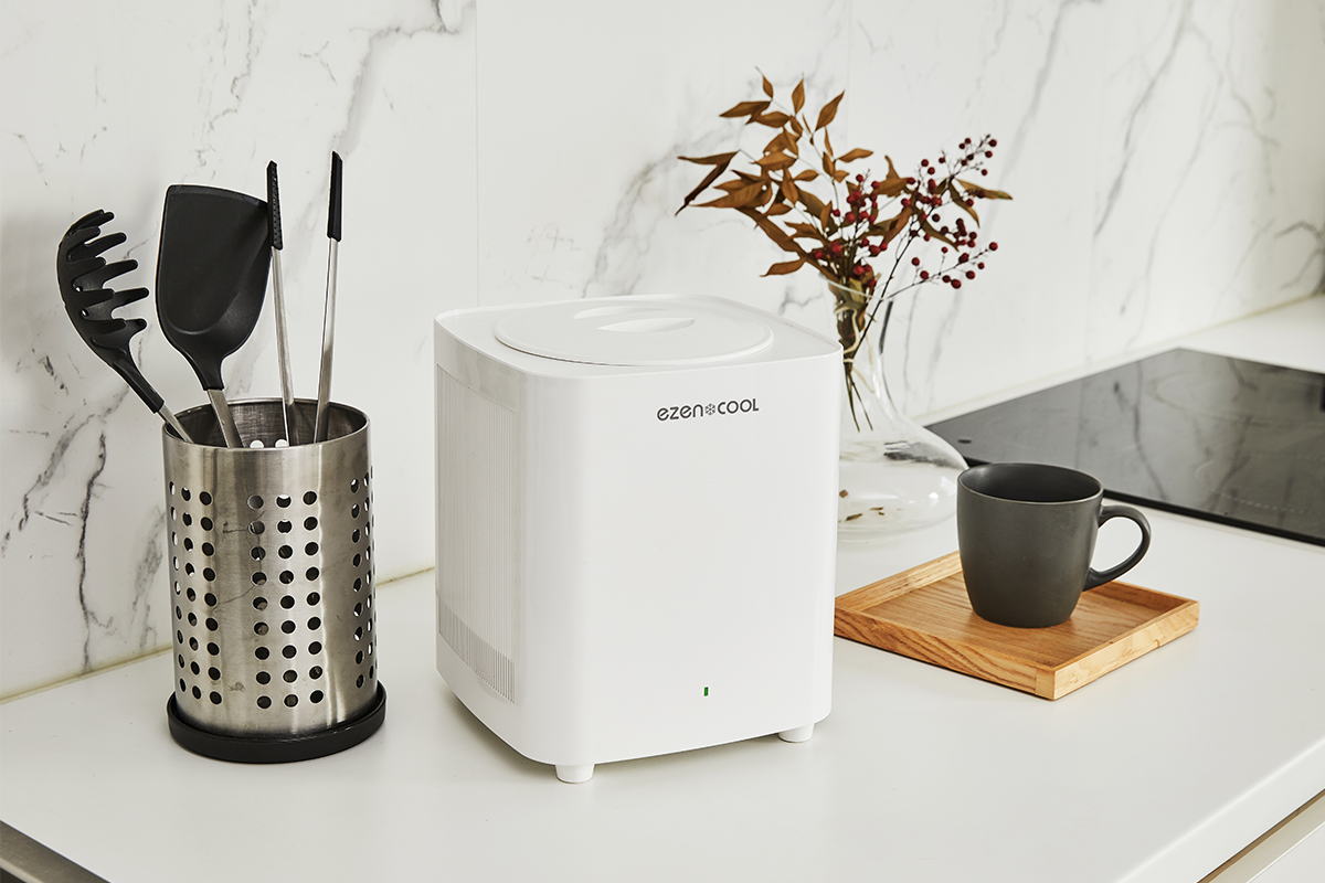 <EZENCOOL>は粉砕型/乾燥型処理機とは異なり、別途設置する必要がなく移動が自由です。また、小さくコンパクトなので、大きな場所をとりません。シンプルなデザインでどこにおいてもオシャレでインテリアに馴染みます。
