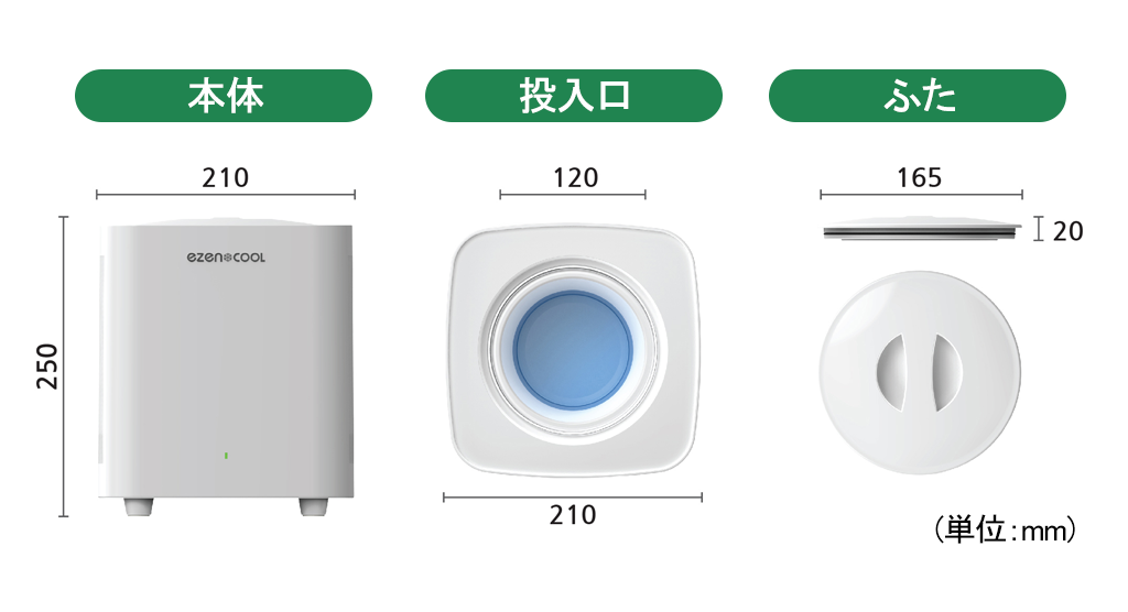 生ゴミの匂いがする原因は、まず生ゴミが腐るから、そしてその匂いが空気中に広がるからです。しかし<EZENCOOL>は、冷却方式により生ゴミの腐敗を防ぎ、2重密閉構造により生ゴミの匂いが外部に漏れることを完全に遮断します。蓋の内側にあるゴムリングが、蓋と本体を密着させ悪臭をとことん遮断します。普段、生ゴミの、悪臭にうんざりしていた方は<EZENCOOL>でそんな悩みとはおさらば!