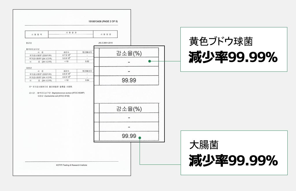 すでに細菌だらけのものであれば、それらを処理する過程であちこちに細菌が付着するのではないかと心配になりますよね? しかし、<EZENCOOL>の冷却部にはセラミック抗菌処理を施しています。コーティングの材質自体が抗菌効果があり、食中毒菌として有名な黄色ブドウ球菌と有害な大腸菌を99.99%撲滅させます。つまり<EZENCOOL>の中に入った細菌は絶対に生きて出れないということです!