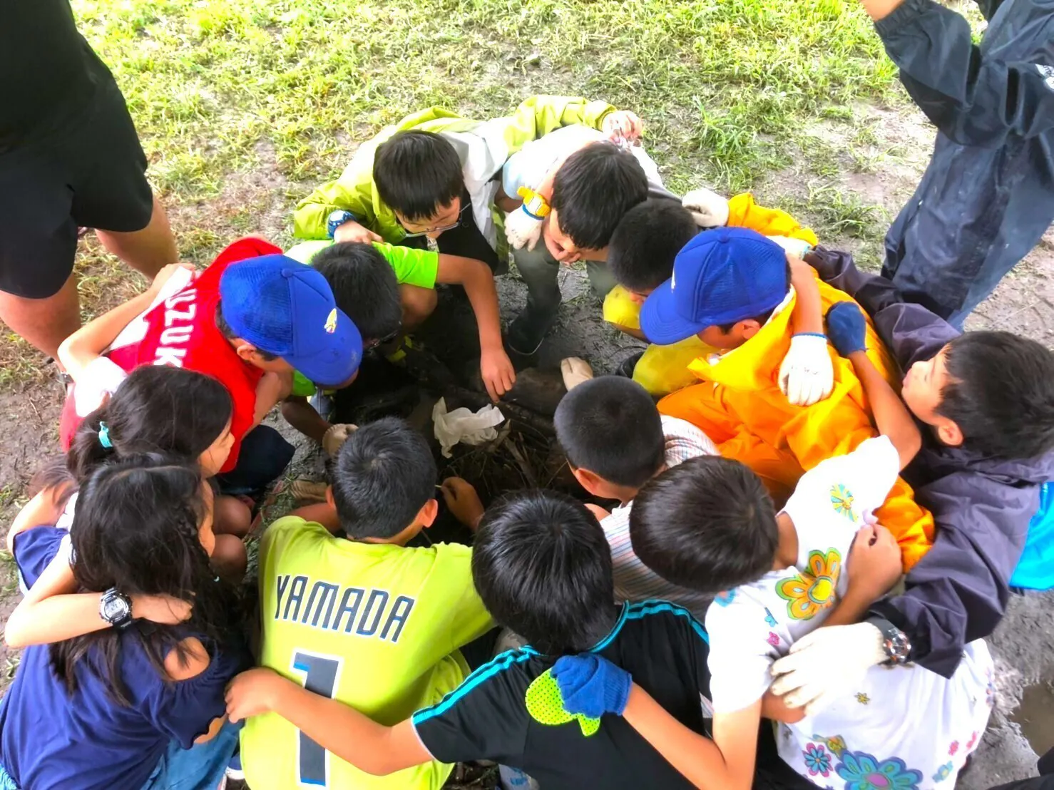 親子遠足 田んぼで大はしゃぎ