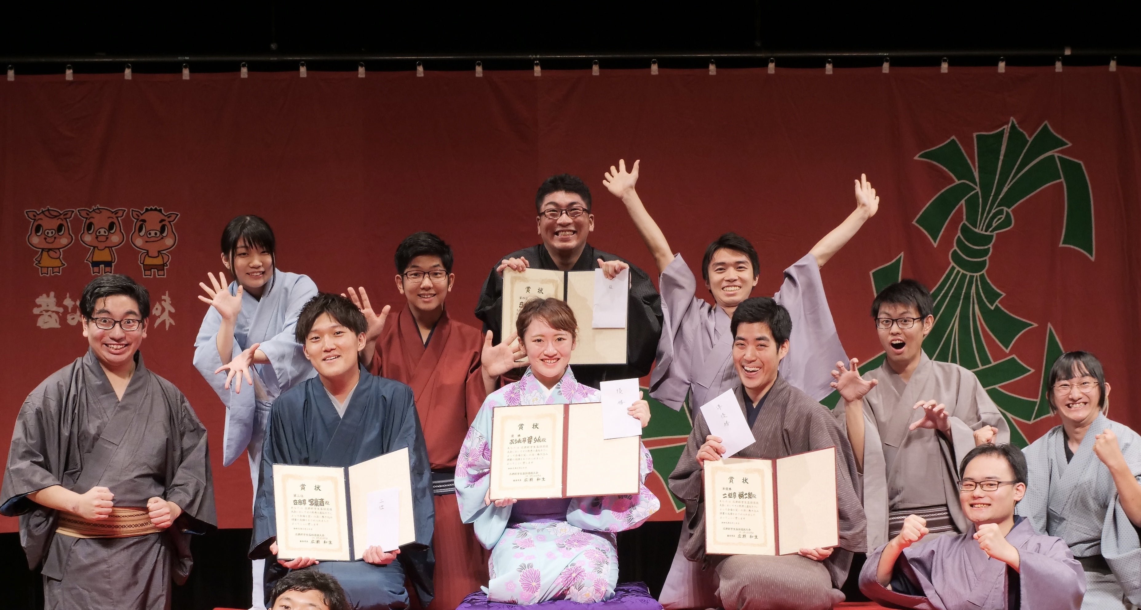 (2019年8月全国学生落語選手権大会「広瀬杯」決勝進出者した落語研究会の学生の皆さん。掲載許可はいただいております)