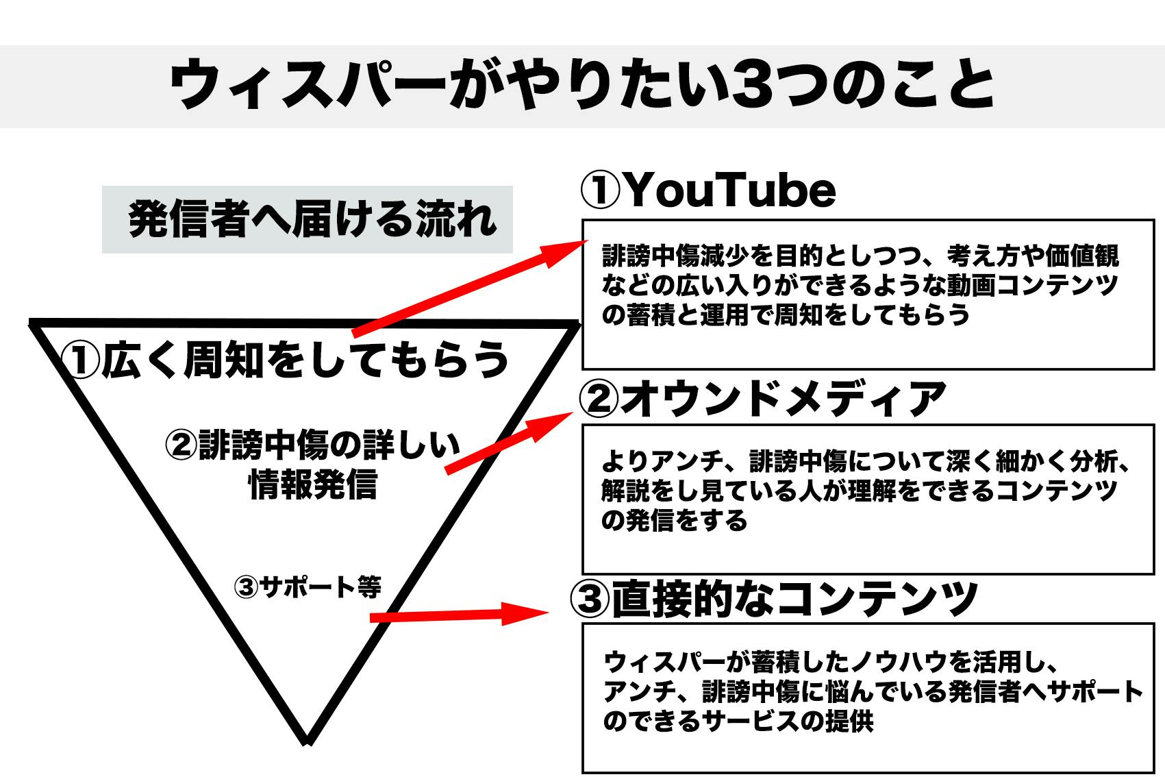 内容 アンチ、誹謗中傷に焦点を当てながらも考え方や価値観などをテーマに発信する