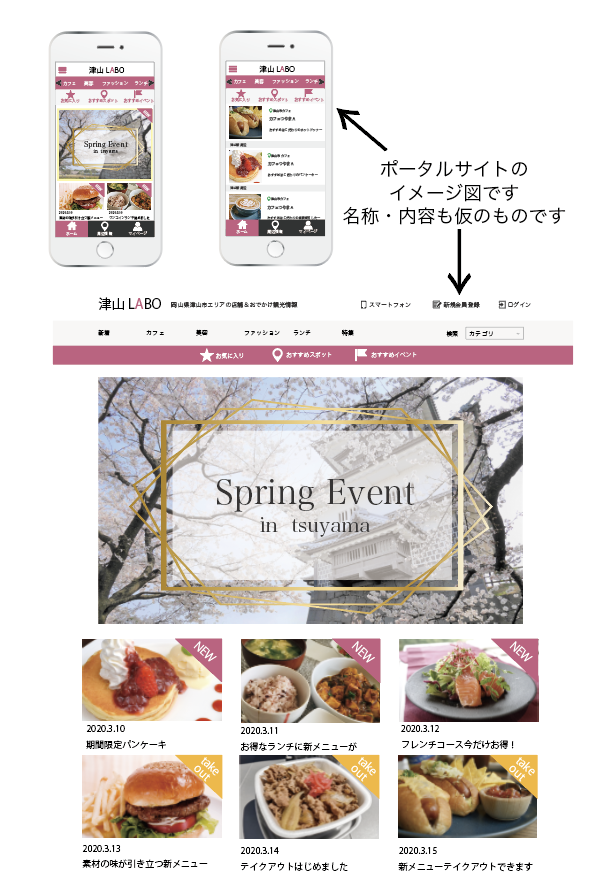 現在津山市には地域の情報をまとめたポータルサイトはなく、それがあることによって登録された事業所の方は店舗紹介ができ、商品やメニューの広告ができます。自社のホームページを持っていない方もポータルサイトを活用し広告ができます。各事業所ごとに管理画面を構築しそこから商品の販売やイベント情報やおすすめ商品など最新の情報を発信できます。