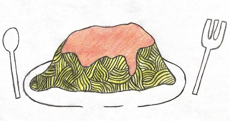 トマトピューレでパスタソース。たっぷりかけてどうぞ