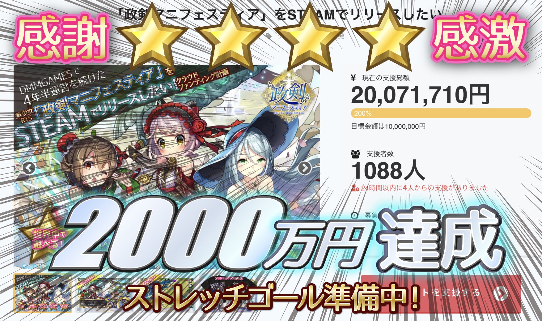 支援額2000万円達成、誠にありがとうございます!