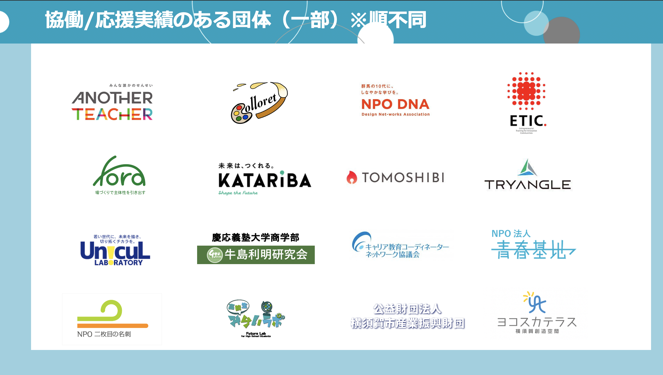 また「自身が(潜在的に)求める学びを手にしていけるように」という思いから、私たちは自社の教育コンテンツの展開ではなく、学びの機会を生み出す人たちの応援にこだわってきました。
