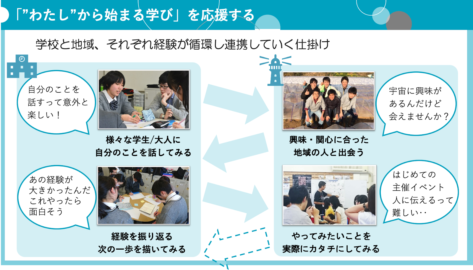 「"わたし"から始まる学び」は、一人ひとりが想いを形にするための武器になり、きっと周囲にいる誰かを笑顔にする未来に繋がっていきます。