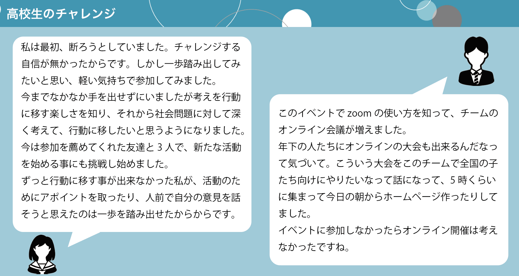 この3ヶ月間で生まれた可能性のタネが今まさに芽を出しつつある一方、受け身な姿勢を取り続けてしまい、動けずにいる高校生の姿も多く耳にします。