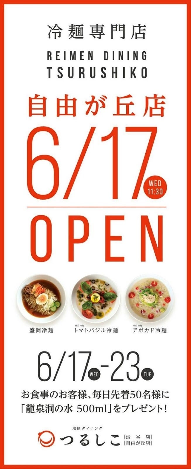 渋谷店につづく2号店が6/17にオープン。コロナ下にニューオープンする冷麺専門店です。蒸し暑い日には美味しいベジタブルスープの冷麺、カレー麺やトマトバジル麺など爽やかな麺を!冷房で冷えたからだには温麺もございます。