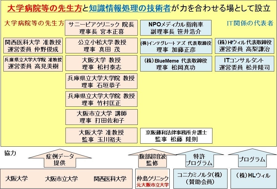 ・宮本正喜:理事長、代表者。医学の専門知識提供