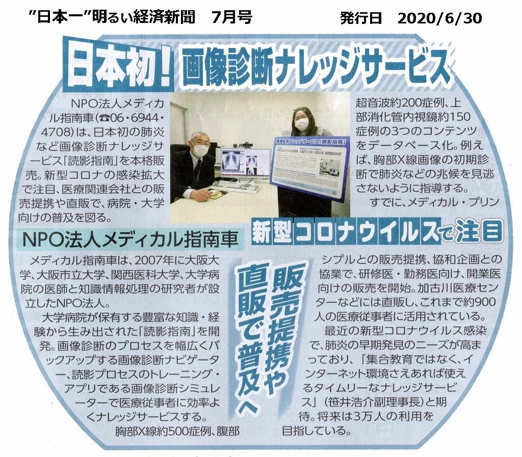 2020. 7 ”日本一”明るい経済新聞の取材を受け7月号に記事掲載
