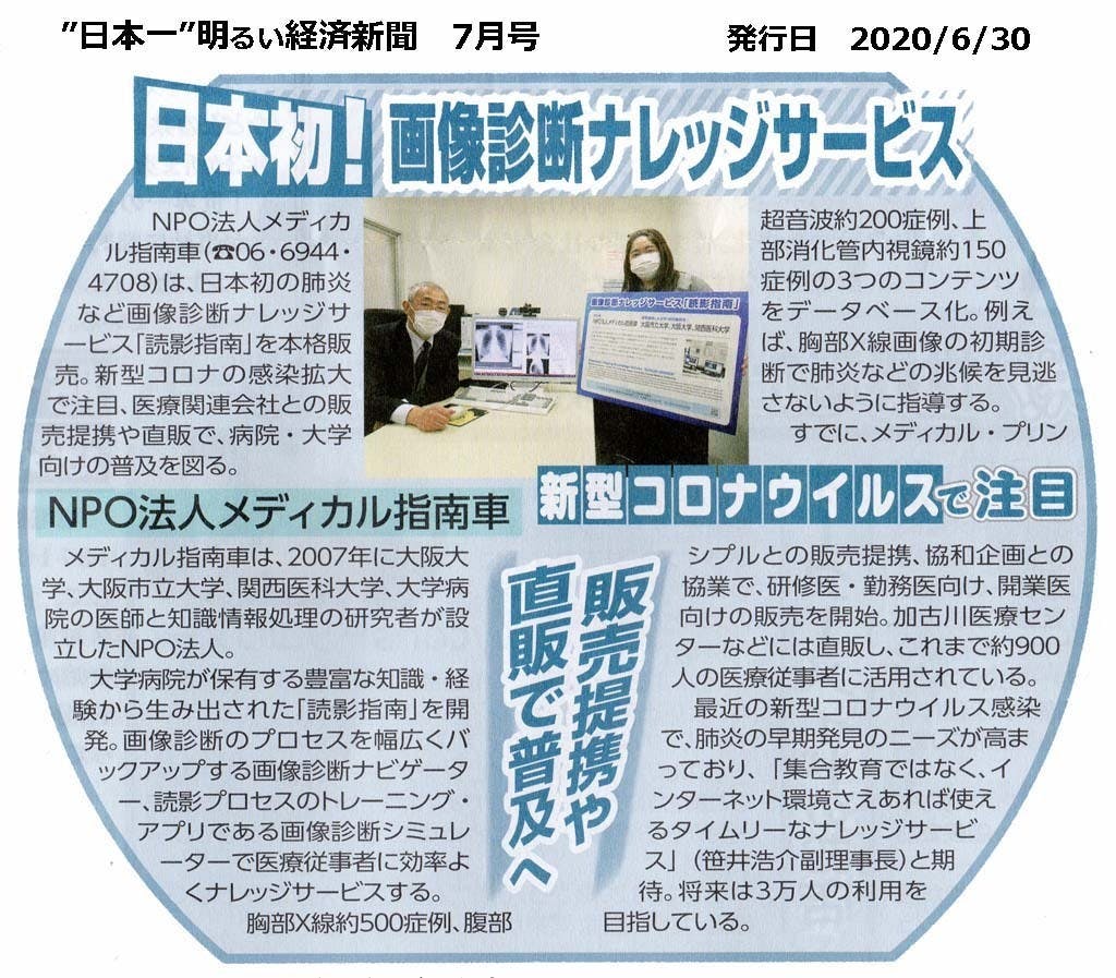 新型コロナウィルスにより臨床研修・病院実習が制限されている今、メディカル指南車では、将来にわたって患者がどの医療機関でも安心して診察を受けることができるように ”画像診断ナレッジサービス「読影指南」” の普及促進に取り組んでいます。