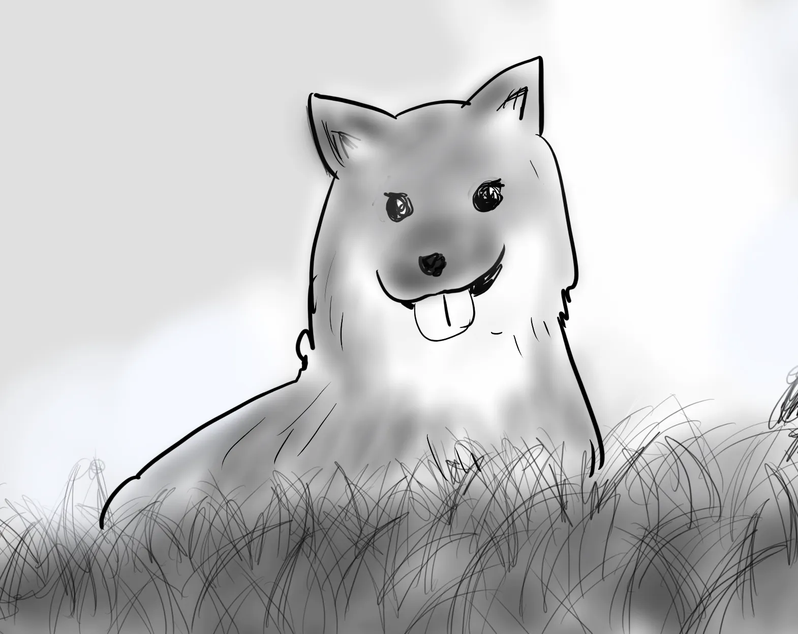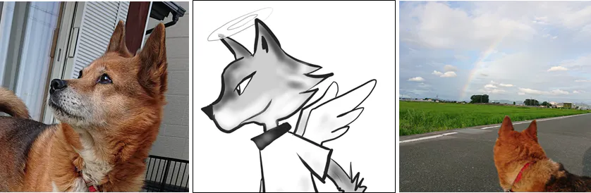 一見、柴犬ぽいが顔も鼻先が長くて、体毛は短く、茶色に黒毛をまぶしたように生やしているから「狼みたい」とよく言われた。それでも首回りと足先は白く、マフラーと靴下をしてるように見える愛嬌もある。