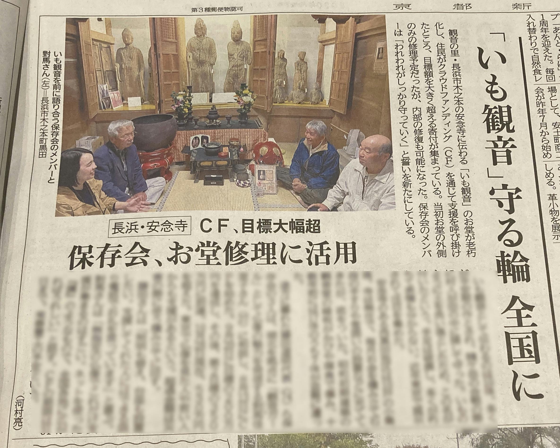 本日付け、京都新聞さんの朝刊(滋賀)に掲載されました!
