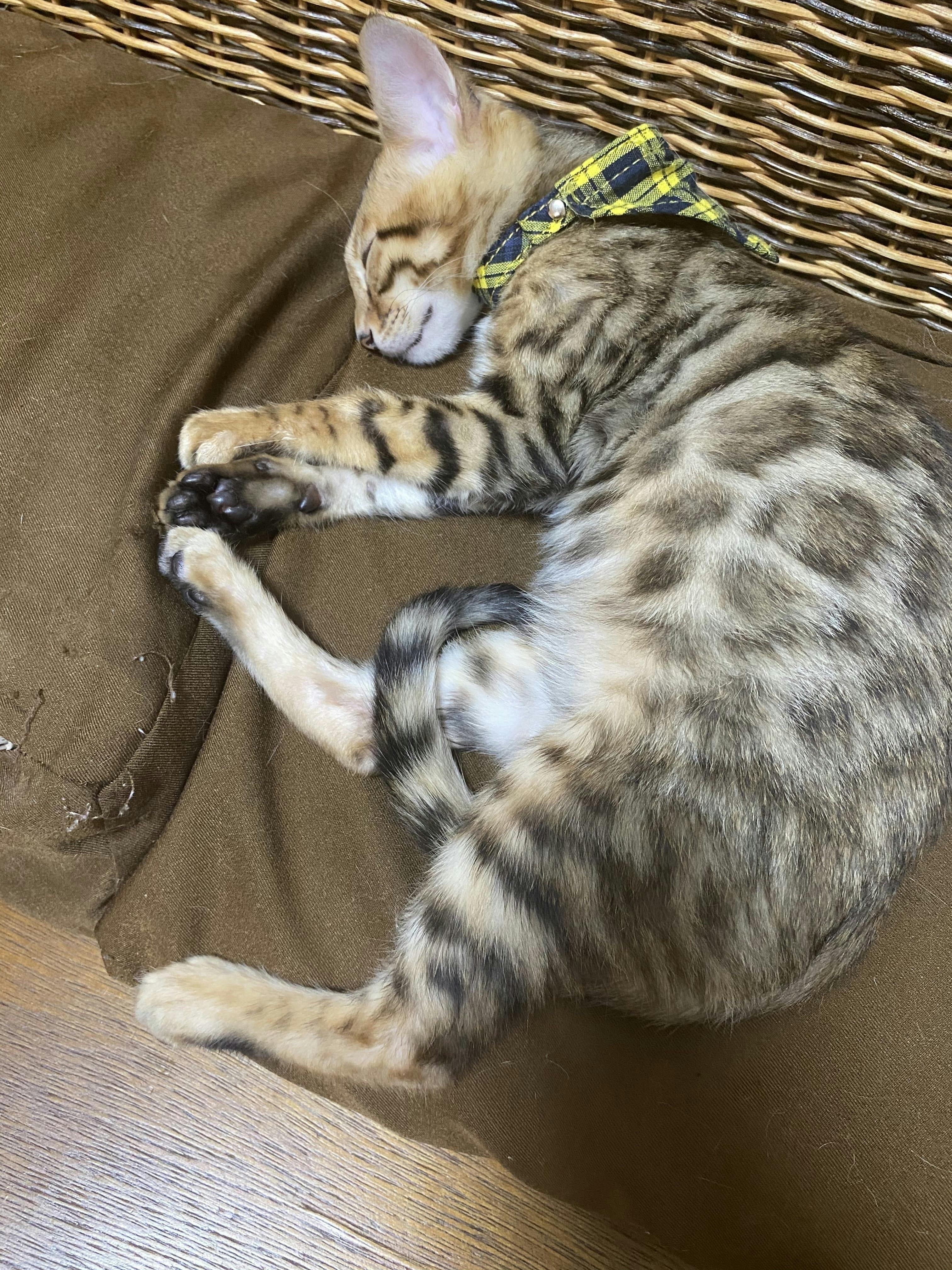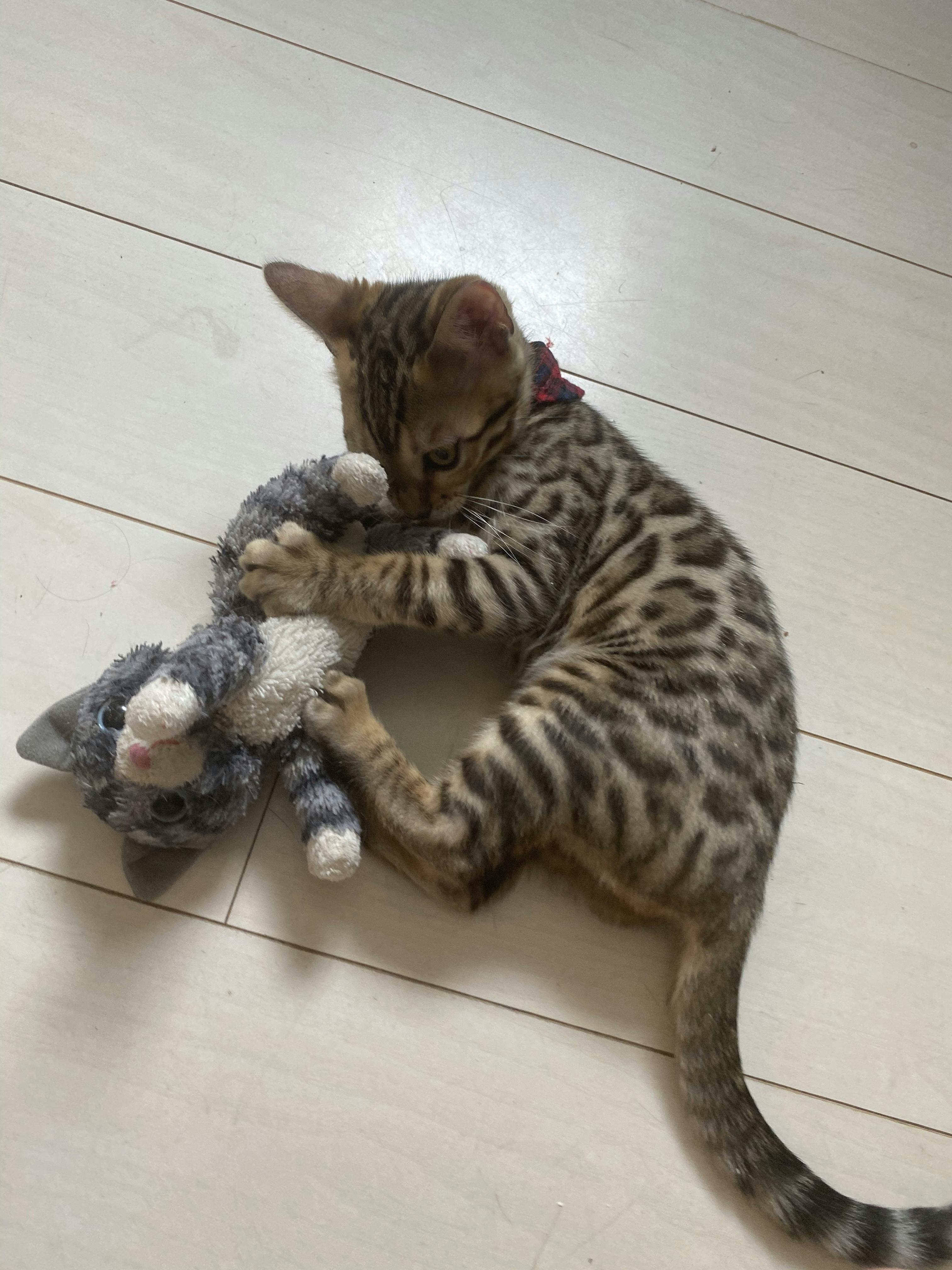 ベンガルという猫種のため大きくなると5キロ前後まで成長します。