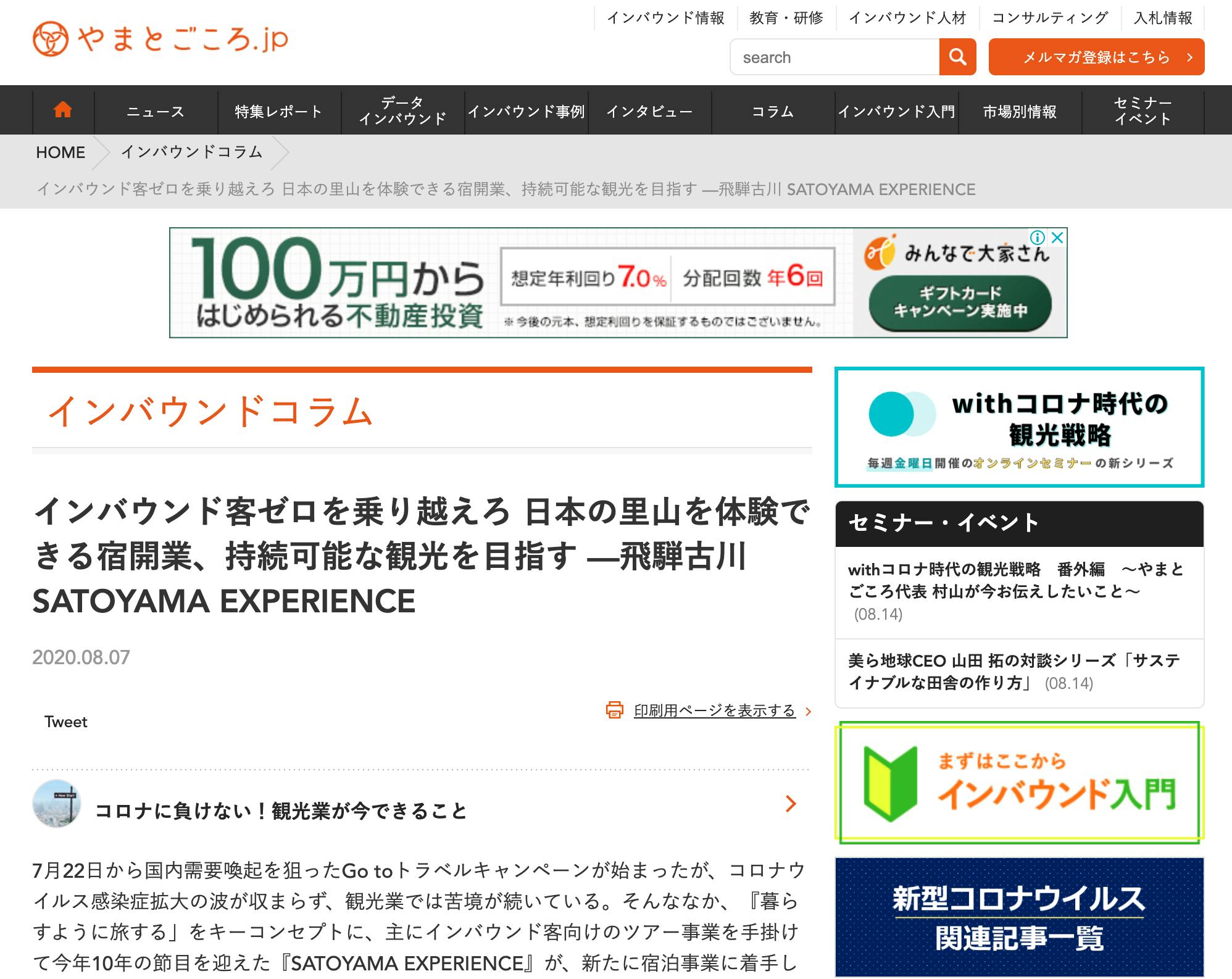 オンライン対談でご共催いただきました、インバウンドツーリズムのポータルサイト、やまとごころさんより、インタビュー記事がリリースされました。