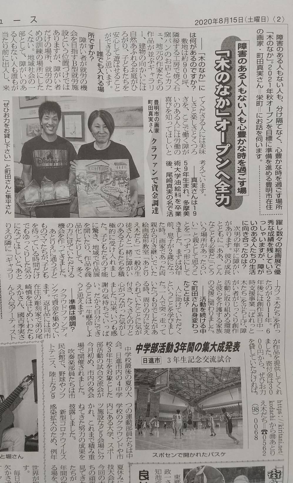 8月15日  地元中日ホームニュースに掲載されました。