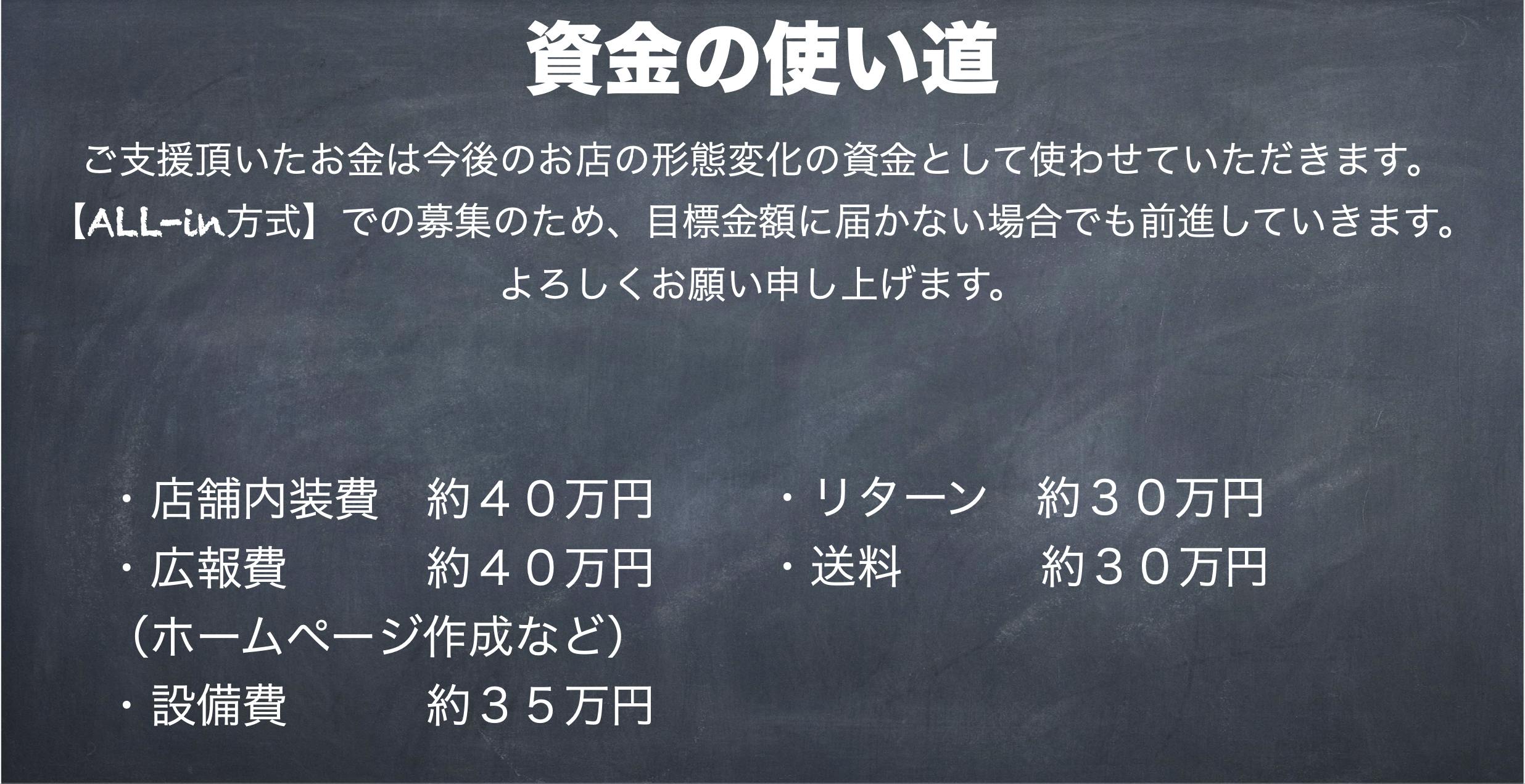 クラウドファンディングをさせていただこうとして最初はなんとかお店を守る資金集めをしようと考えていました。お世話になっている方々に相談したところ『お前は2代目として苦労してないのに都合よくお金を集めようとするな』と突き返されました。その直後は『お前らになんの苦労がわかんねん』とおもい心が折れそうになりました。けれどその後何がしたいのかを自分なりにしっかりと考えました。たしかに当初の考え方では例え支援いただいても数ヶ月お店を維持することしかできません。私がやりたいことは想いを受け継ぎのこしていくことでした。そしてこのクラウドファンディングの目的を