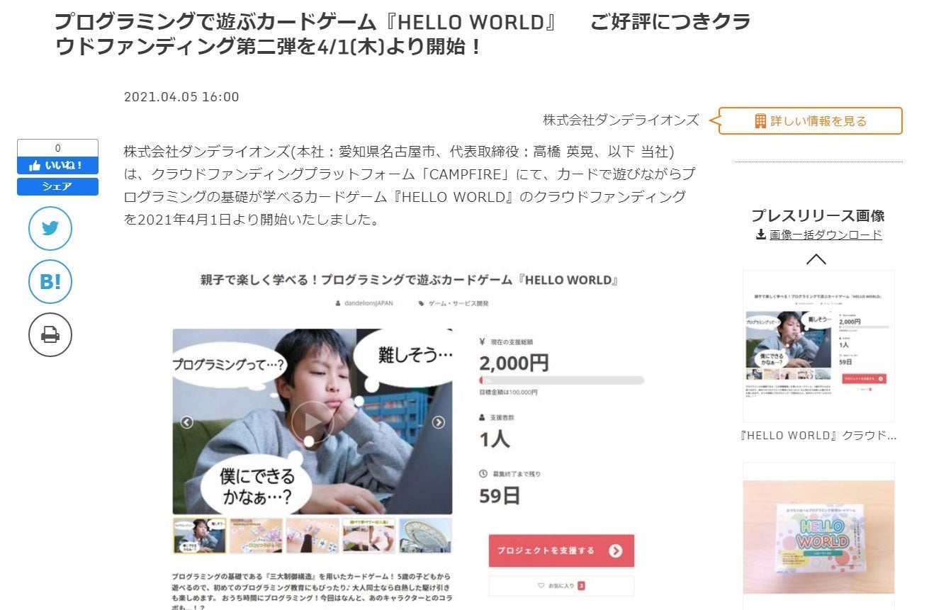 @Press様に当クラウドファンディングページを掲載いたしました!