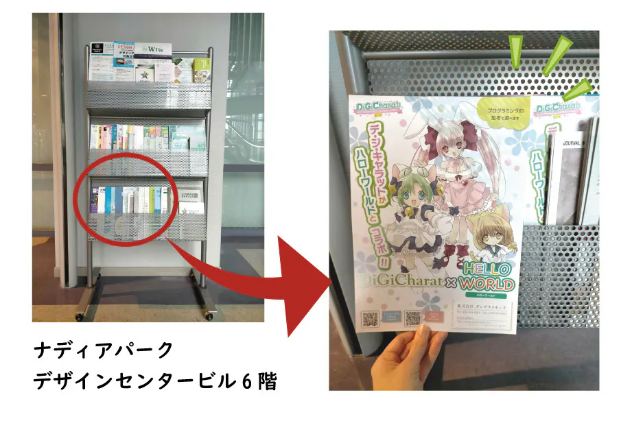 『デ・ジ・キャラット』のコラボデザインのチラシを置かせていただいています!