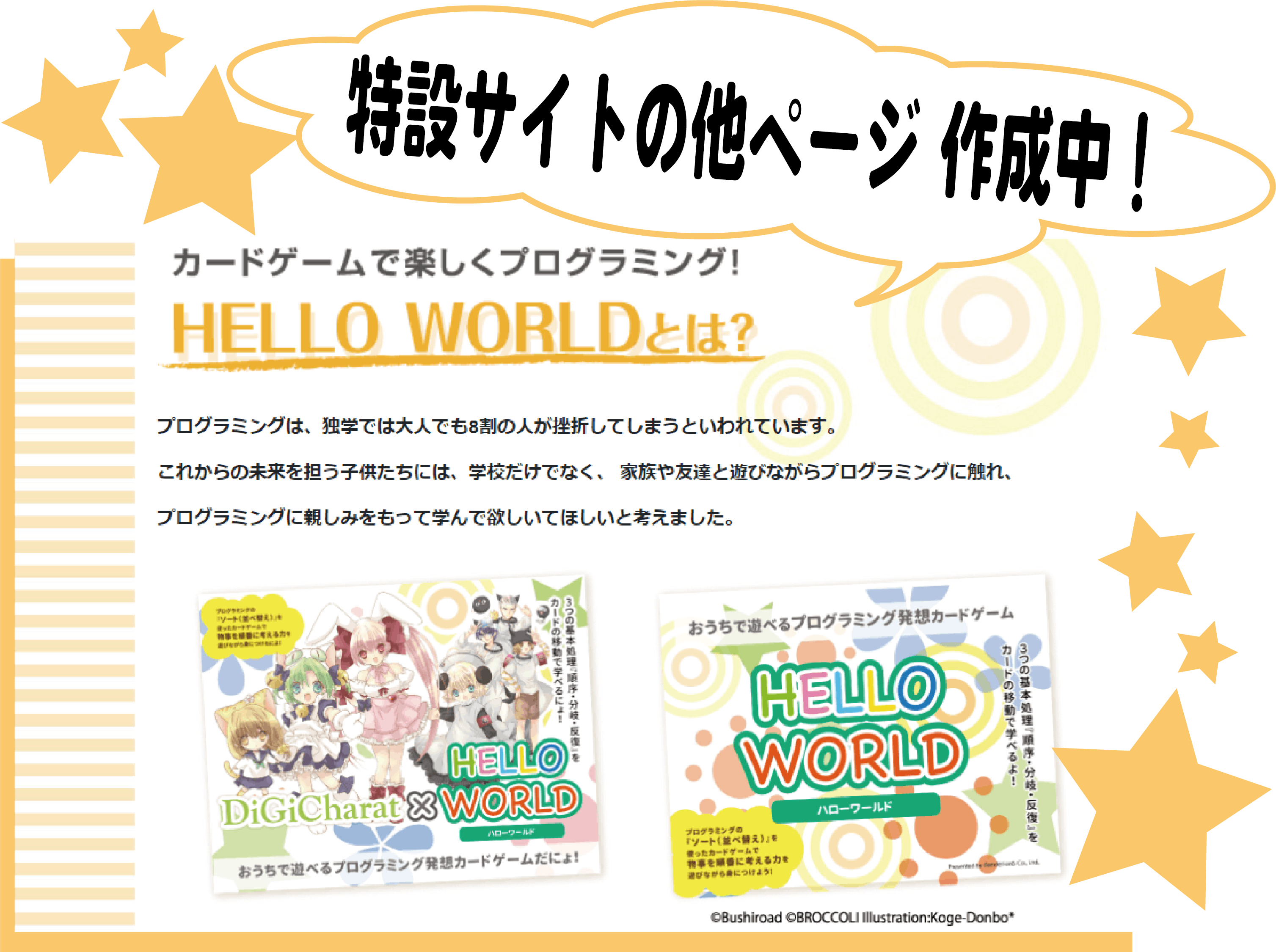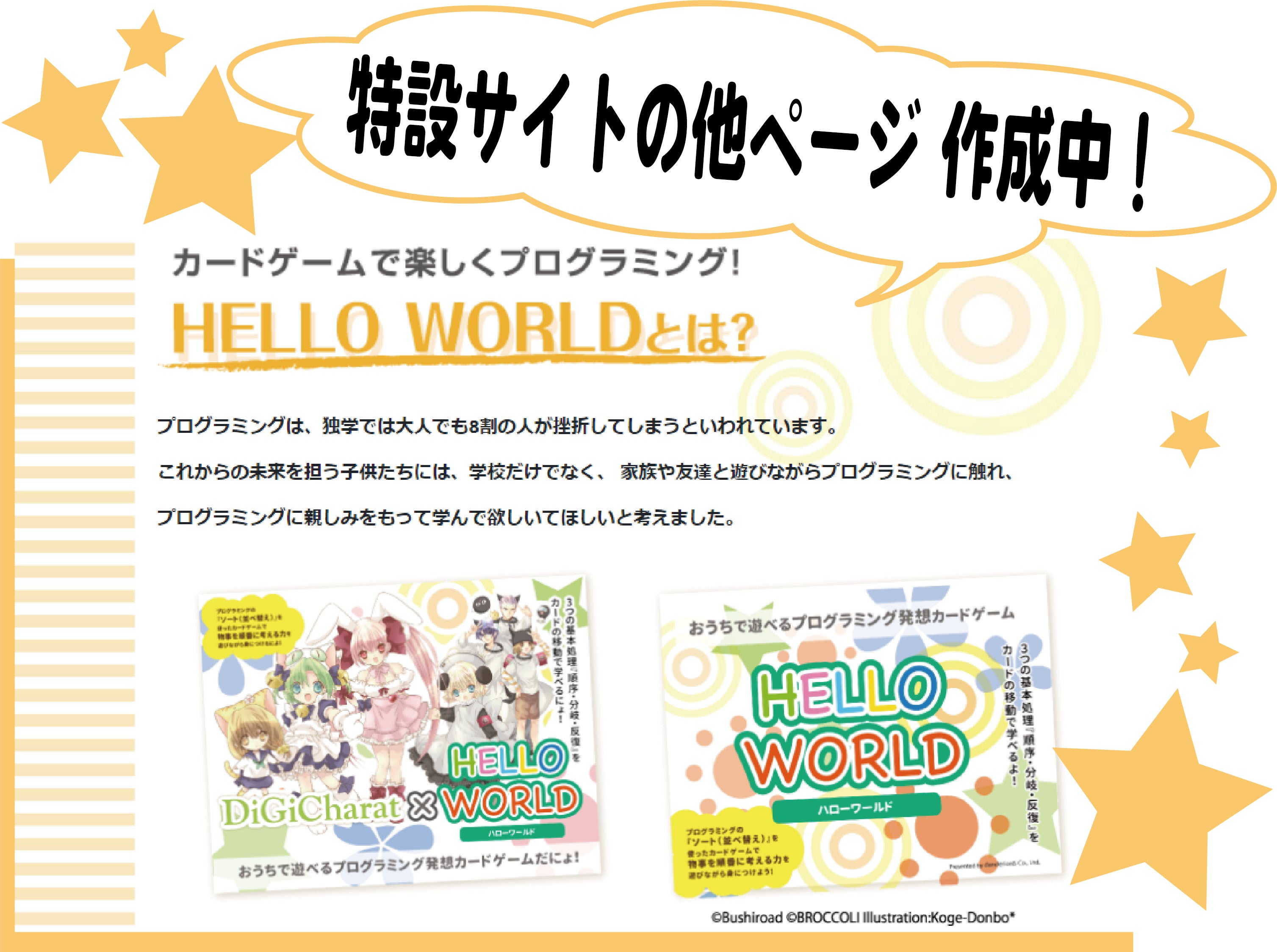 現在、特設サイトの追加ページ『HELLO WORLDとは』と『購入ページ』を作成中です!!