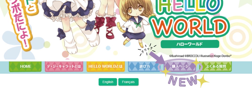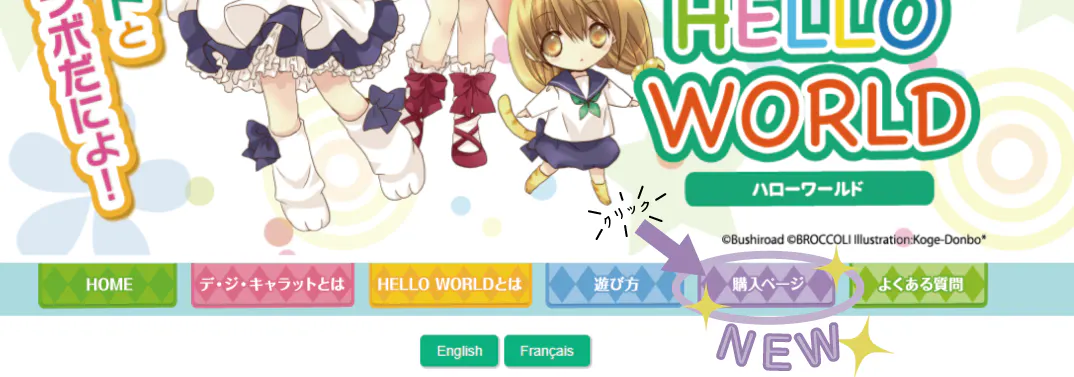 <『HELLO WORLD』の『デ・ジ・キャラット』特設サイト『購入ページ』:>