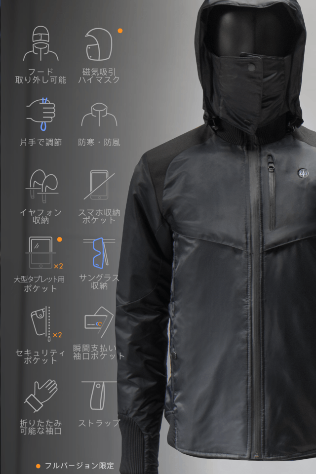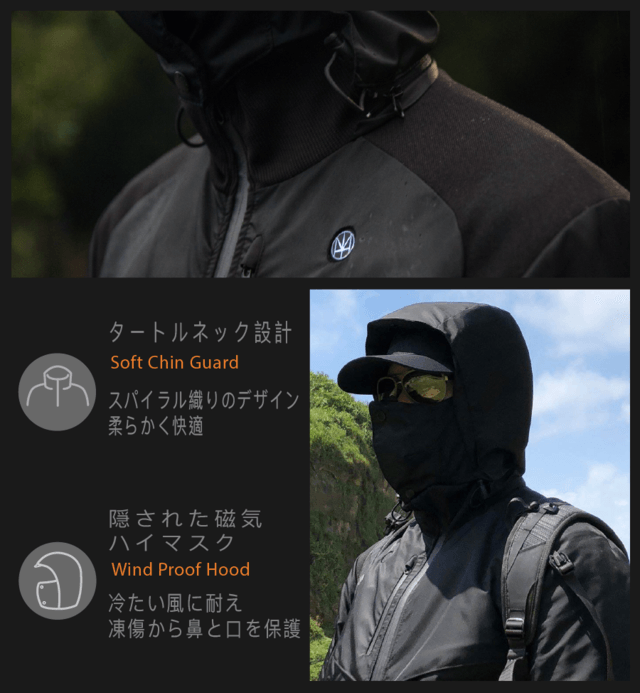 ✔ 発熱・防風・防雨仕様で1つのジャケットで3つの役割