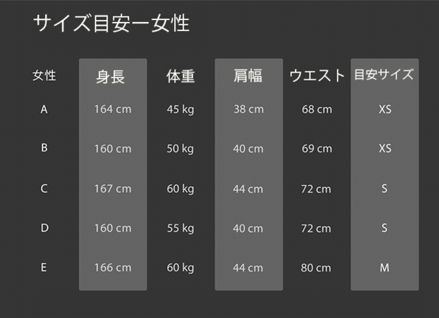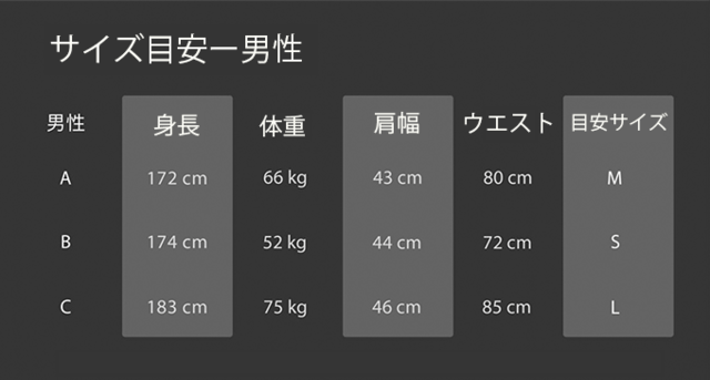 下記のサイズ目安を参考に、サイズをお選びください。