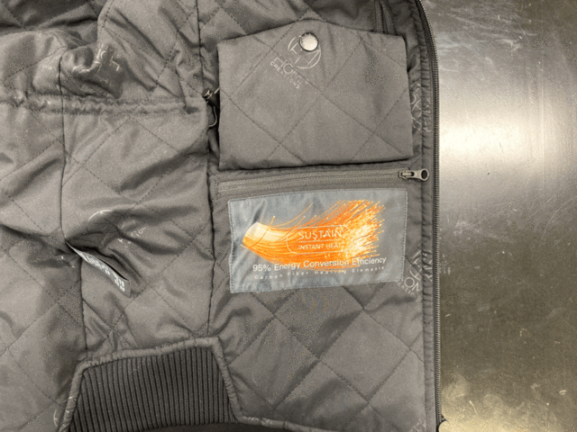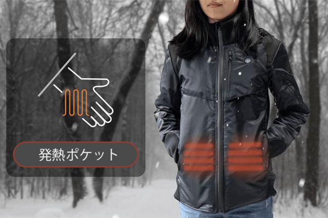 発熱システムをポケットの内側へ入れ込むと、