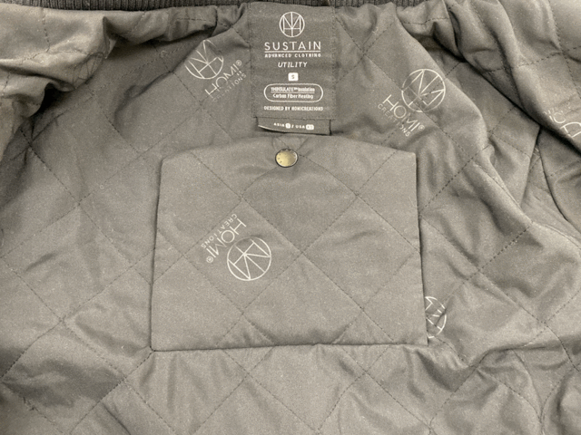 ジャケットの生地は日本の大手メーカーの高品質カーボンファイバーを使用しました。