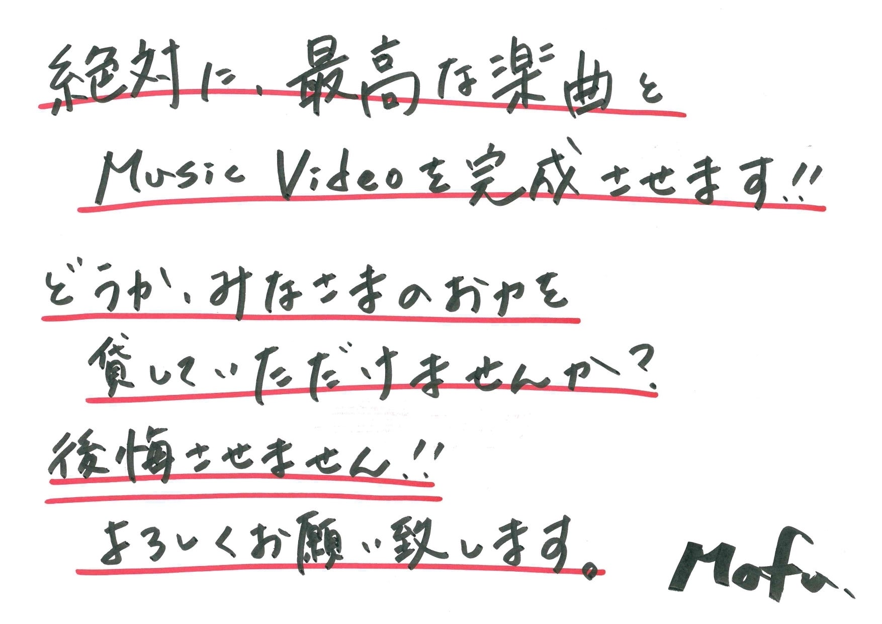 ファンのみんなの力をお借りして、なんとか最初のアルバムとMusic Videoを完成させたい!更に上のステージを目指したい!もっともっと沢山の方にMafuの歌を聴いてもらいたい!